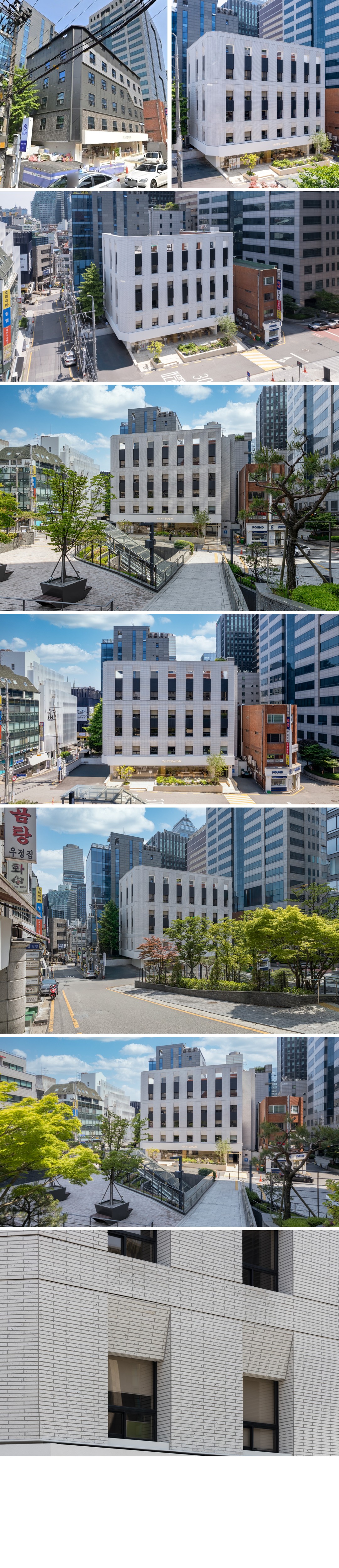 노후화된 외관 이미지를 개선하고 도시 맥락에 어울리는 정제된 입면으로 재구성한 프로젝트입니다.